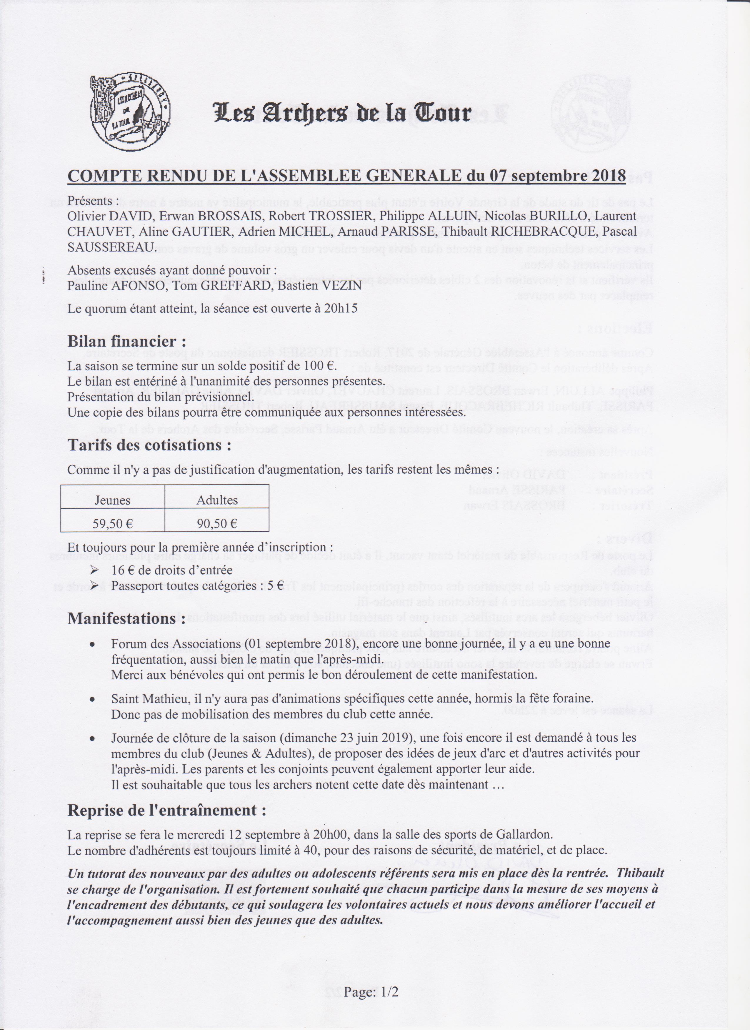 Notre Assemblée Générale s’est tenue le vendredi 7 septembre 2018 dans la salle polyvalente de Gallardon.