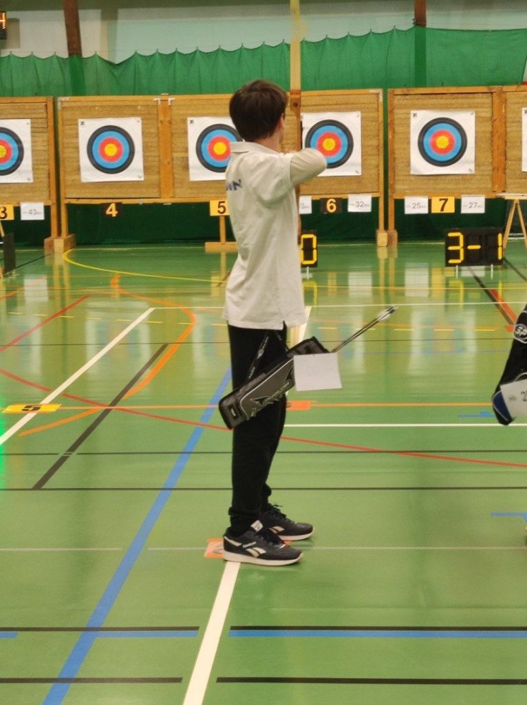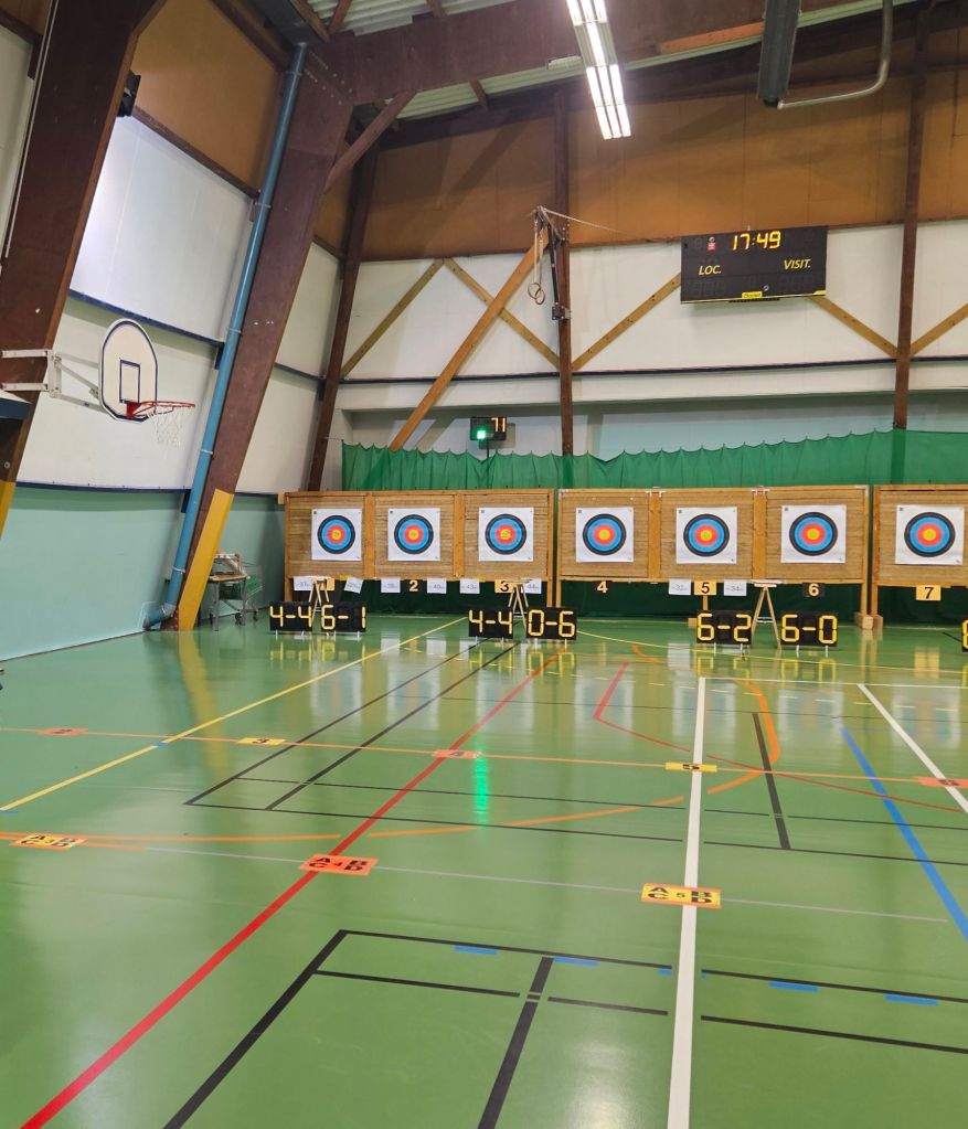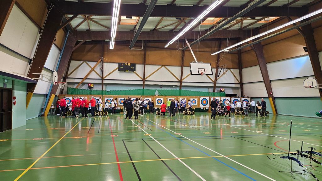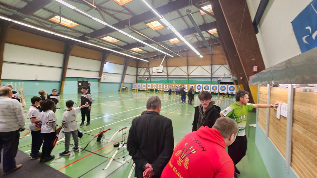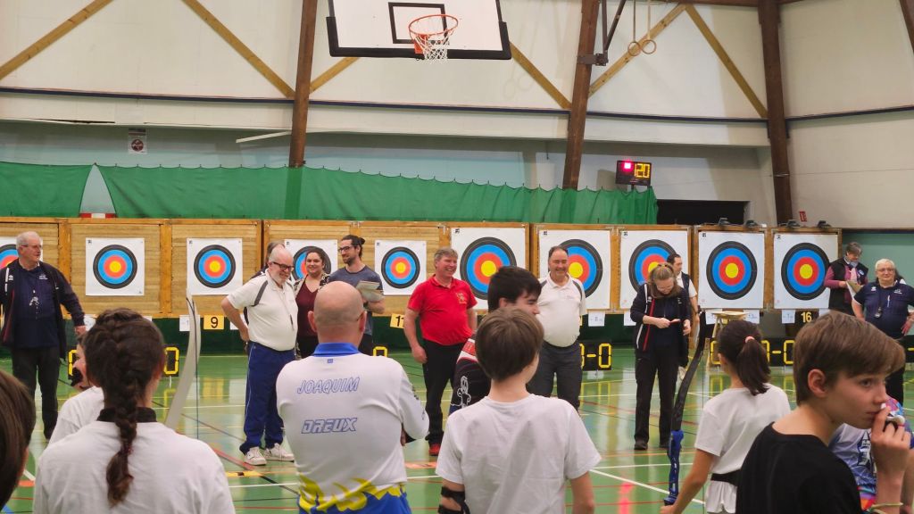 Ce sont des matchs. un contre un. 2 points si meilleur score, 1 point si égalité, 0 dans les autres cas. Faut arriver à 6 points. Si égalité, on tire une flèche chacun et gagne celui qui est le plus près de la croix du centre (mais là, aucun risque du gâteau traditionnel !). Cinq matchs pour les jeunes, sur 6 organisés, ce qui donne un temps de repos supplémentaire. On additionne les points, si besoin on recourt au goal-average. Mais le nombre d’ados, de jeunes et de poussins n’étant pas le même, les finales et petites finales ne se font pas dans les mêmes conditions. Nous n’y sommes pas encore…